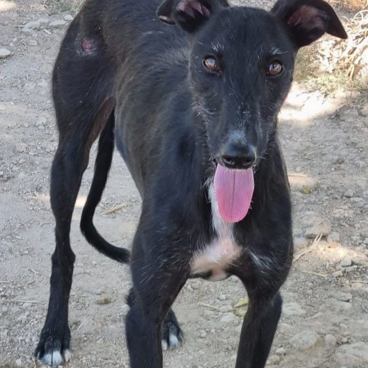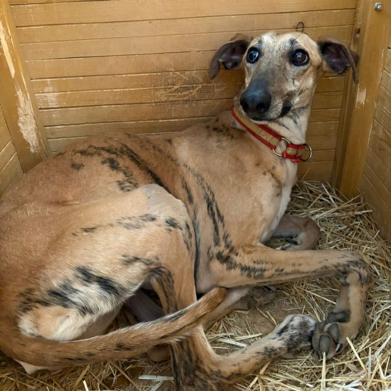 Diese Galga ist erst 15 Monate alt und wurde von ihrem Galguero aussortiert weil sie aufgrund eines gebrochenen Beines nicht mehr für die Jagd zu gebrauchen ist.