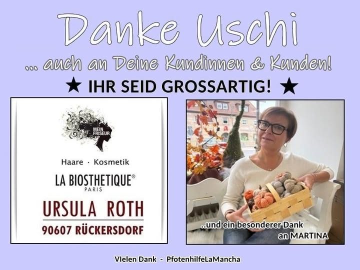 Ein herzliches Dankeschön an Uschi! Für deine unermüdliche Arbeit und dein Engagement unseren Schützlingen zu helfen, und Geld zu sammeln in deinem Salon.